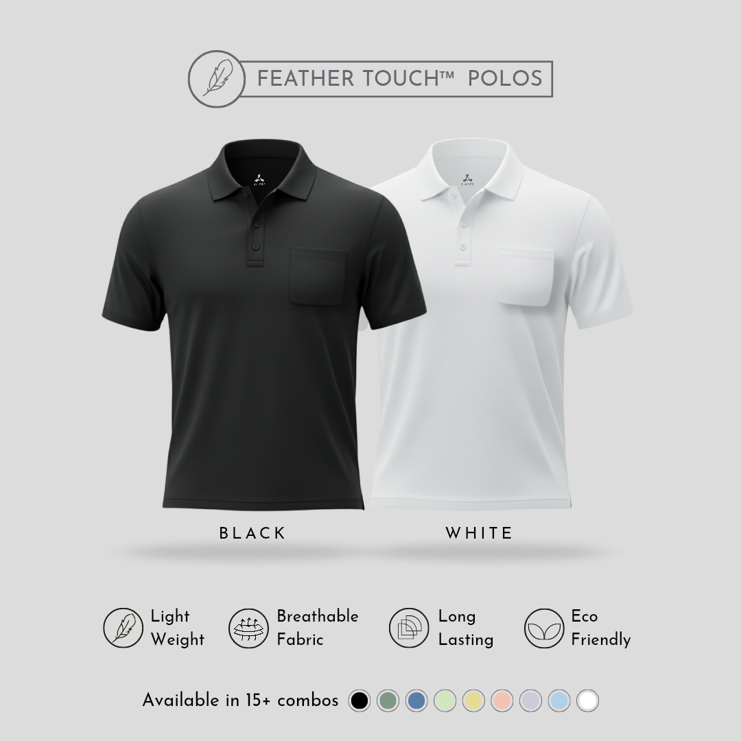 Feather Touch™ Polos with Pocket – Ultra Soft Black & White Men's Combo