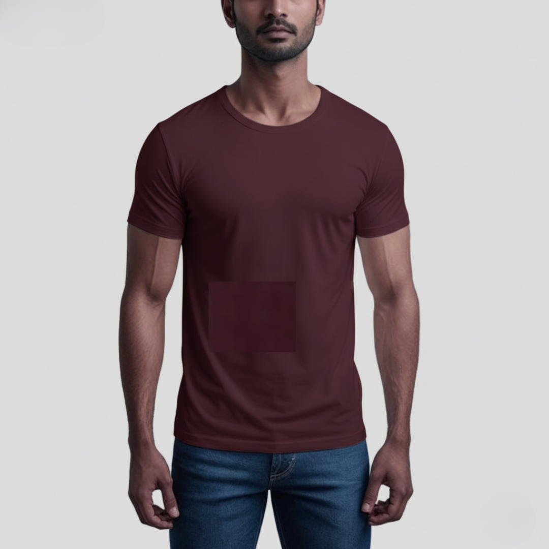 Feather Touch Round Neck Plain Burgundy T-Shirt for Men