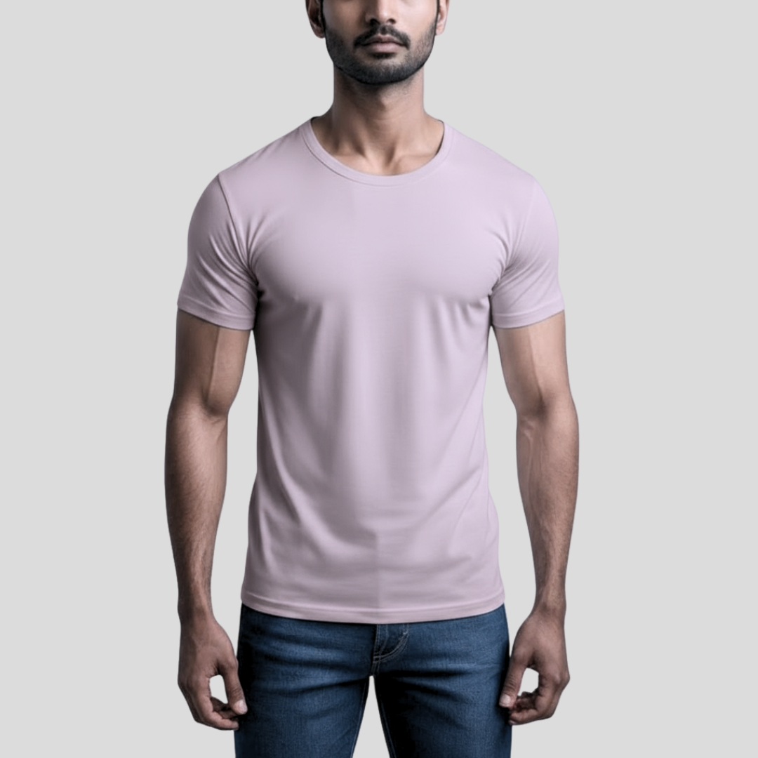 Feather Touch Round Neck Plain Lavender T-Shirt for Men